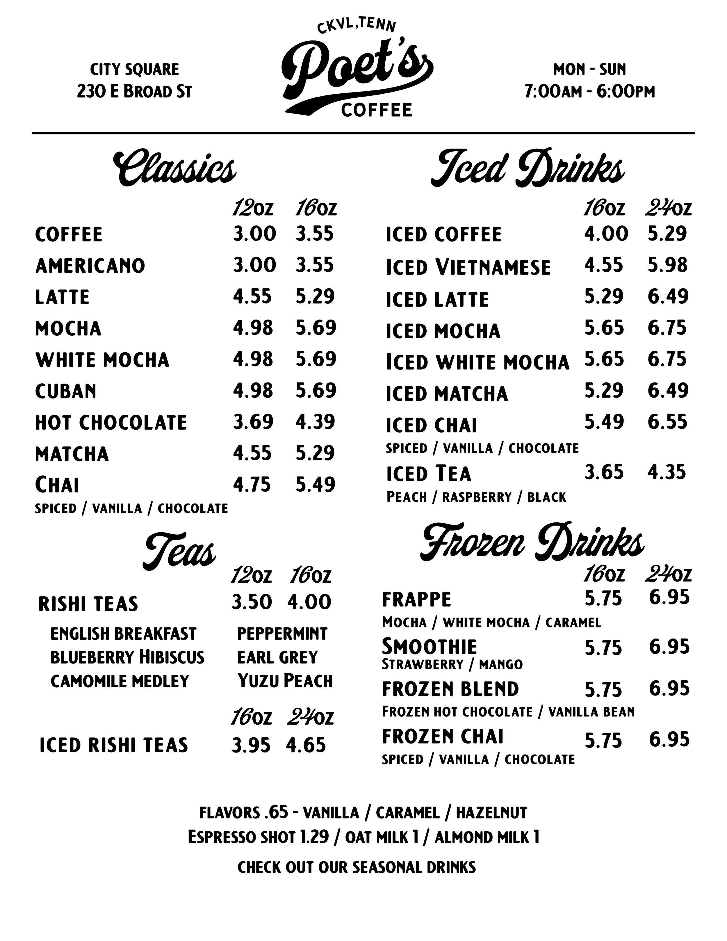 Poet’s Coffee has a 30 year history of serving coffee to the Upper Cumberlands. This is where it all started! Located on the town square in Cookeville. We our proud of our rich history and continue to serve up quality coffee and food to the great people of the Upper Cumberlands.